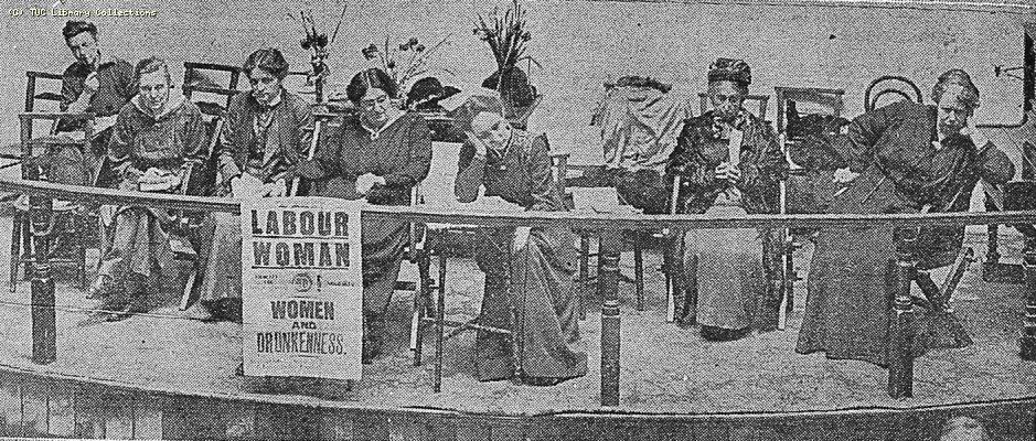 Unlike the previous image, I have never used this one when writing or talking about Macarthur, because it is so ambiguous (even if the banner in front of the stage makes us wonder – tongue in cheek – if the women speakers are all sozzled). But there is plenty to speculate about. 18 months into the First World War, are these socialist campaigners taking a breather between speeches from the relentless work needed to keep industrial women safe and on decent pay, to organise them into trade unions, to ensure that army allowances payable to wives and children were adequate, to support widows and carers, to help women make ends meet during a period of spiralling costs of living? Or is just hot in the room? The end of a long day, the start of another? When this was taken in early 1916, Mary Macarthur had a young baby – was she suffering from nights of interrupted sleep? On top of her usual heavy workload – now at least doubled by the pressures of war – she had travelled from London to attend this conference, which presumably involved either bringing her daughter with her or arranging childcare at home. In other words, once again, we can read into the photo what we want to see – and still be wide of the mark.